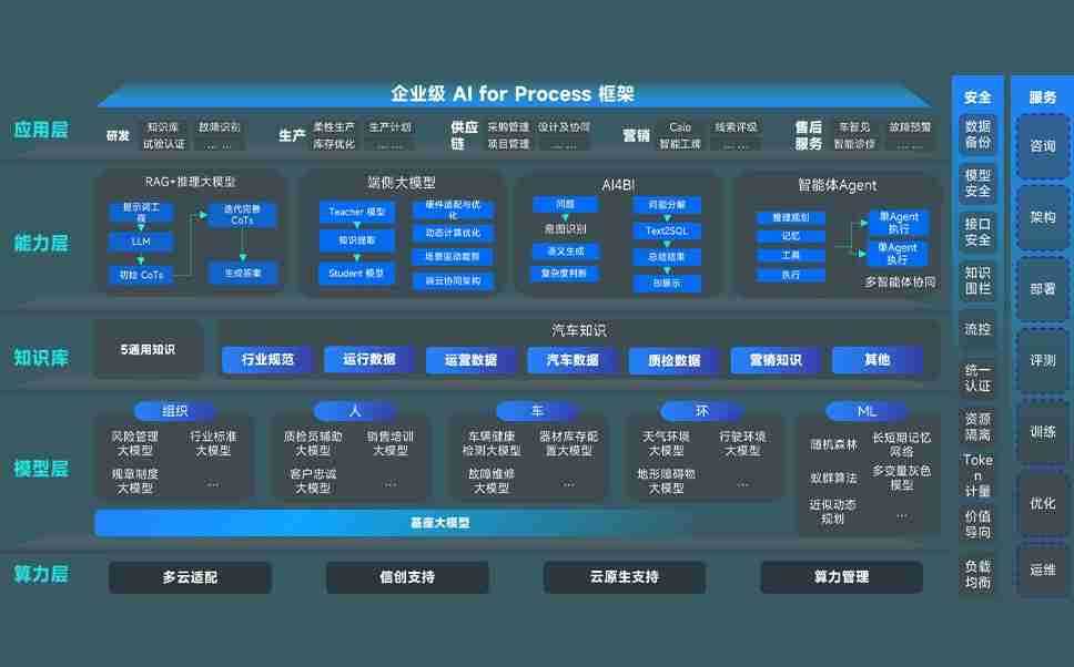 端到端的一站式AI工作空间深度融合了从企业战略规划到日常经营的全流程业务板块,,,定向解决车企内部领域多、、、部门多、、链条长、、场景碎片化等难题,,,,支持车企快速构建以AI为核心的生产力写作体系,,,,实现任务执行与AI能力的无缝集成与交互